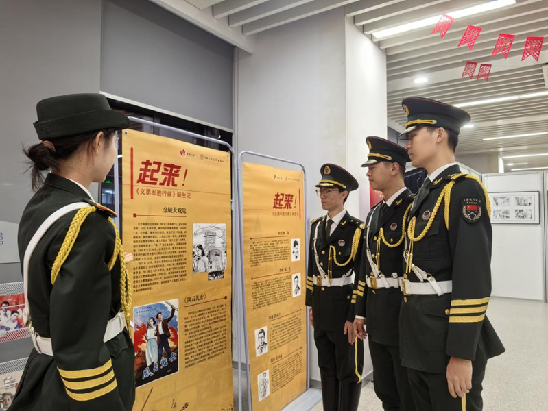“以前唱国歌,更多是一种习惯和仪式。今天看到一句句歌词背后的故事,才真正触摸到那段烽火岁月的力量,内心更加激动和澎湃!”2025级自动化专业学生木尼热·艾尼瓦尔情不自禁地庄重地敬了个军礼。这个维吾尔族姑娘是2022年9月考入我校,2023年3月就报名参军入伍。今年9月刚刚复学返校报到,第二天报名加入了校国旗护卫队。一开展,我校国旗护卫队的成员就集体身着仪仗队服观展。校现教中心党支部则以组织集体观展作为开展“礼赞新中国,同庆76周年华诞--与祖国同过生日暨2025年集体生日”活动的重要内容。师生们表示,这种“图文并茂”的党史、新中国史学习方式,让抽象的历史变得鲜活而生动,极大地增强了情感的共鸣和精神的洗礼。