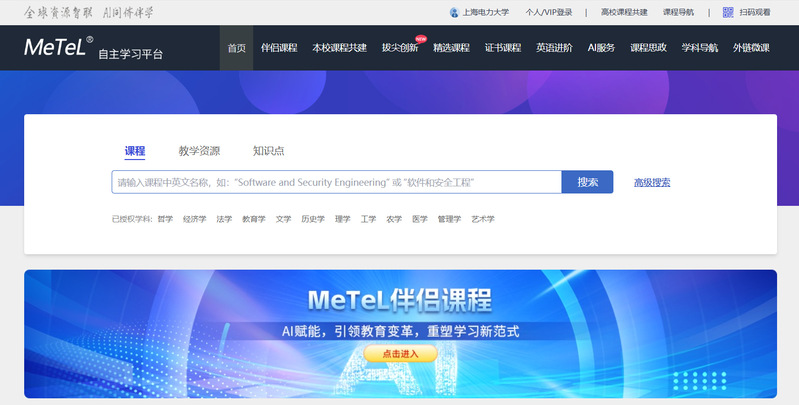 MeTeL平台是由国道数据提供、持续动态更新的英文多媒体课程数据库,适用于线上教学(Online Learning)、双语教学以及本科生、研究生和留学生的自主学习(eLearning)。同时,平台为教师提供数字化授课备课资源与教学支持服务(eTeaching),助力教学改革与课程建设。